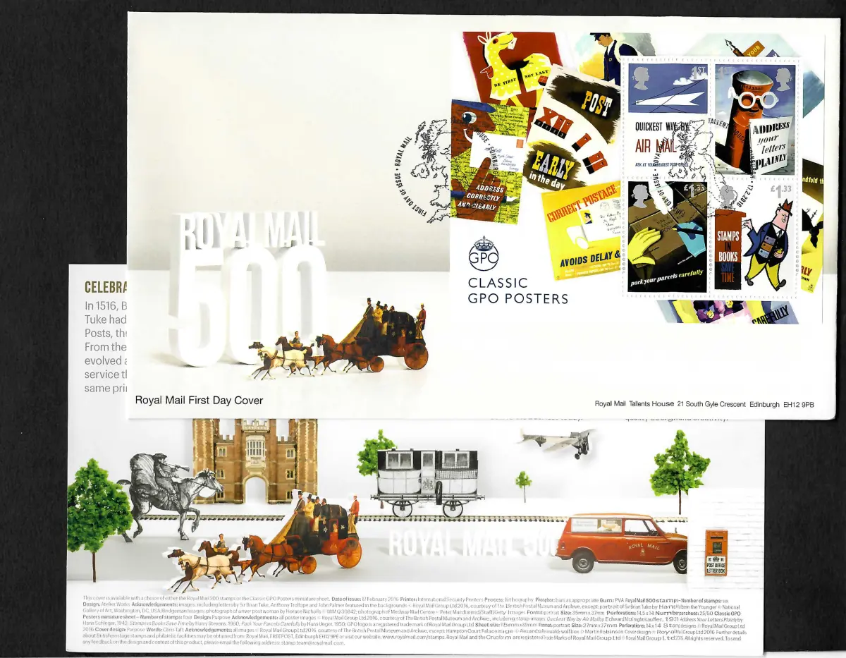 GB 2016: 500 Jahre Royal Mail, klassische Poster, FDC
