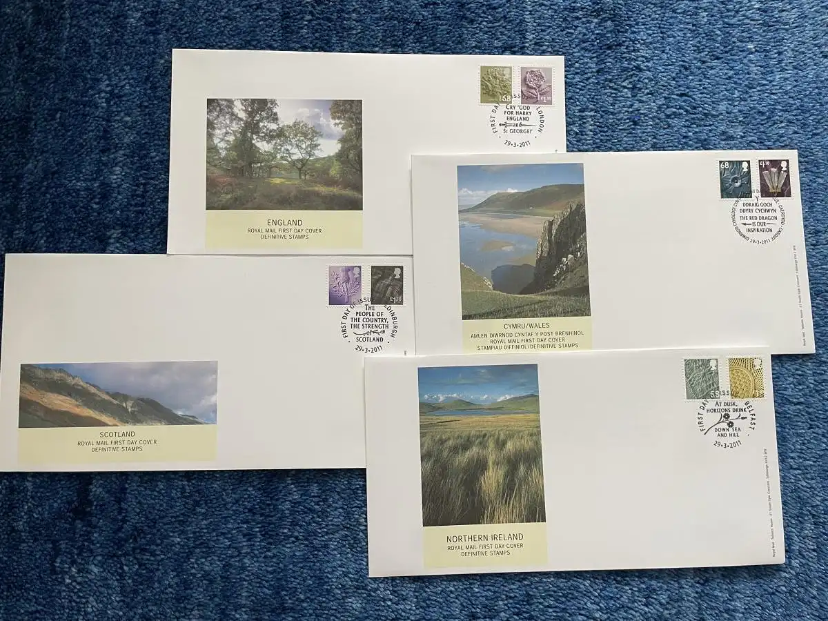 GB: 4x FDC of Wales, Scotland, Northern Ireland, Angleterre 2011