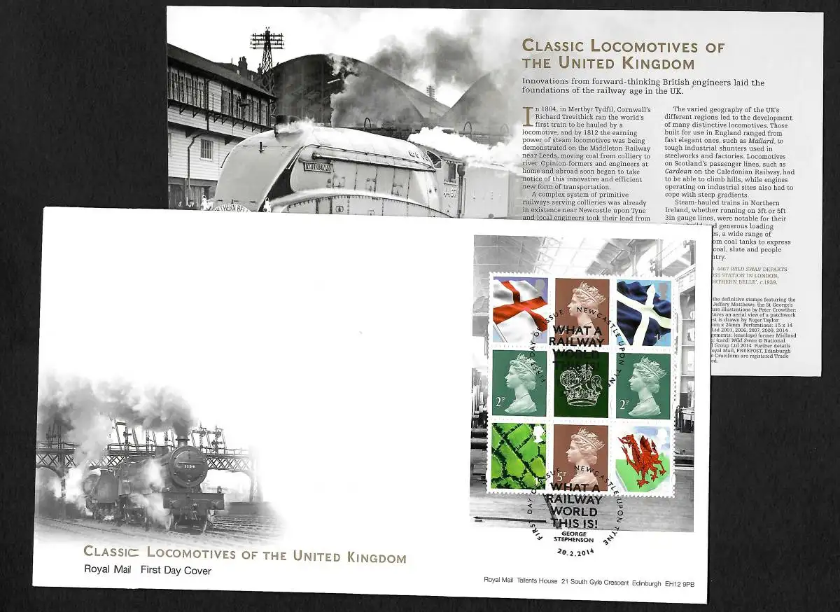 GB: Classic Locomotives of UK, locomotives classiques, FDC avec feuille de dépôt