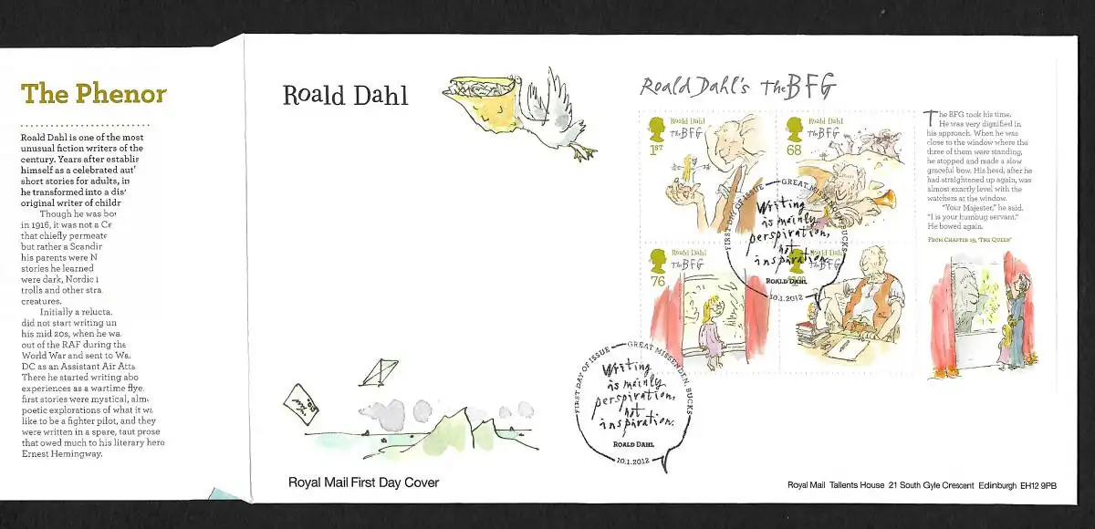 GB: FDC Roald Dahl the BFG - Writing is my private inspiration