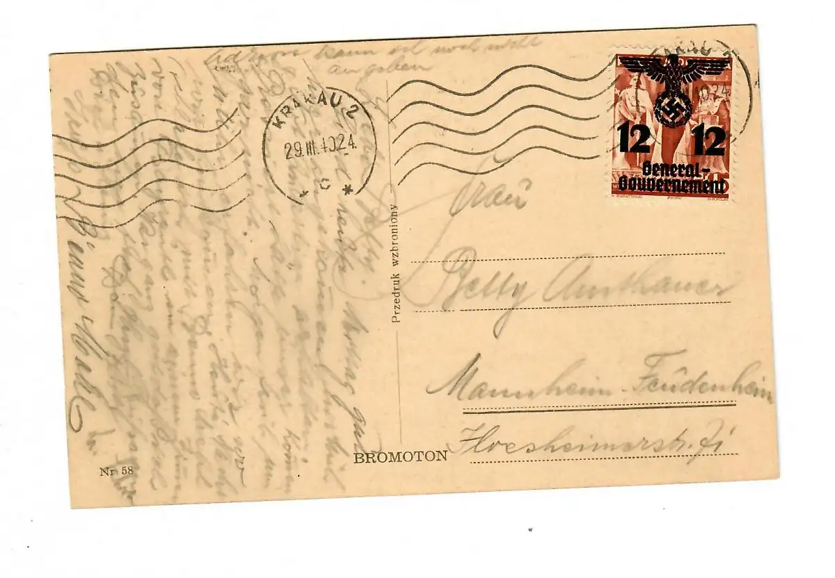 GG 1940: AK Gruss de Cracovie à Mannheim