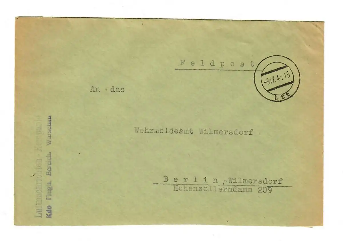 GG 1941 Feldpost Aéroports Compagnie Varsovie à Berlin