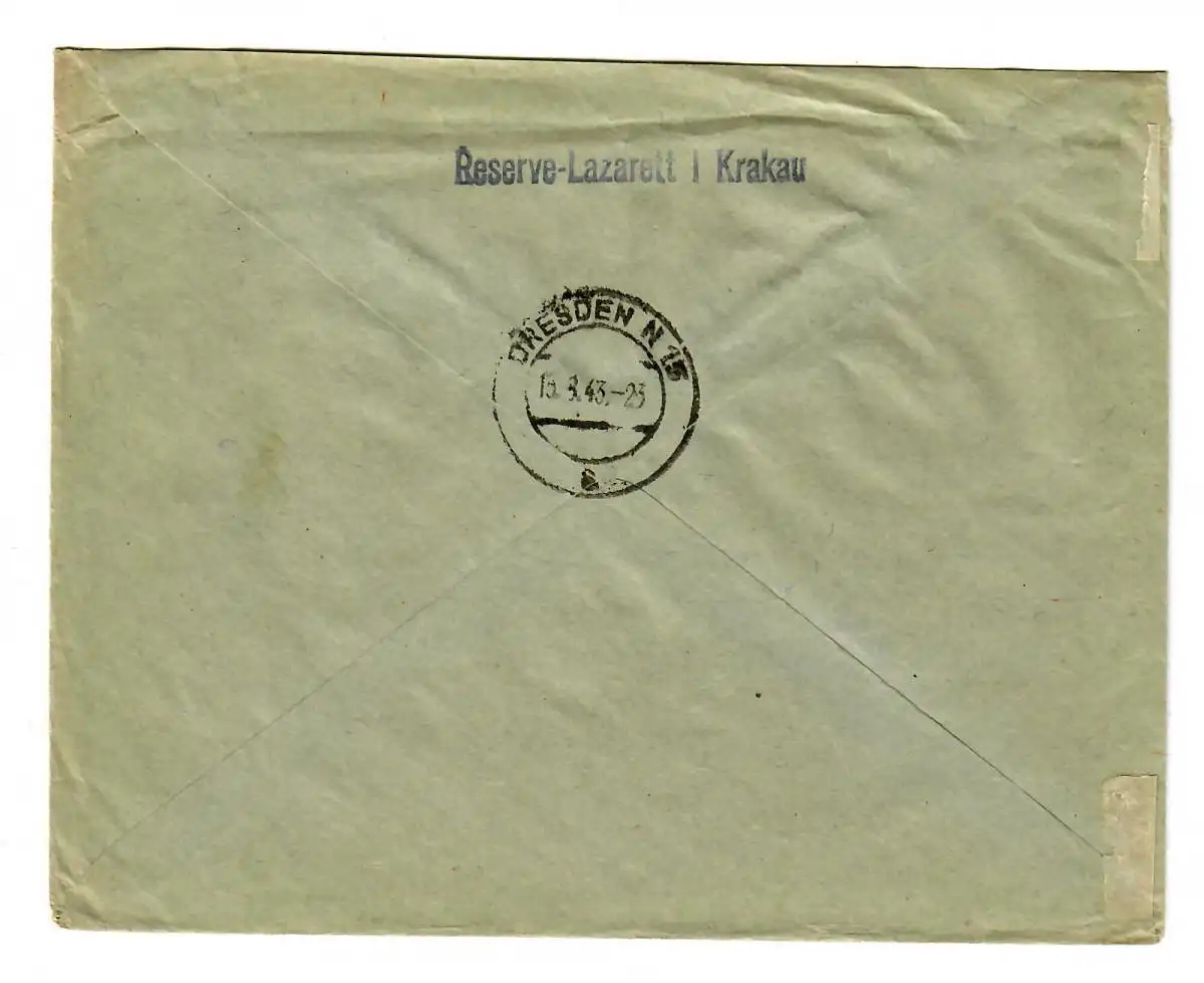 GG 1943 Feldpost: Inscrivez-vous Cracovie L'hôpital de réserve à Dresde