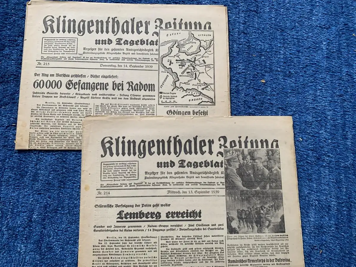 GG: 2x Klingenthaler Zeitung: 13/14 septembre 1939