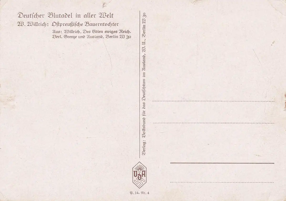 GG: AK Willrich, fille paysanne de Prusse orientale
