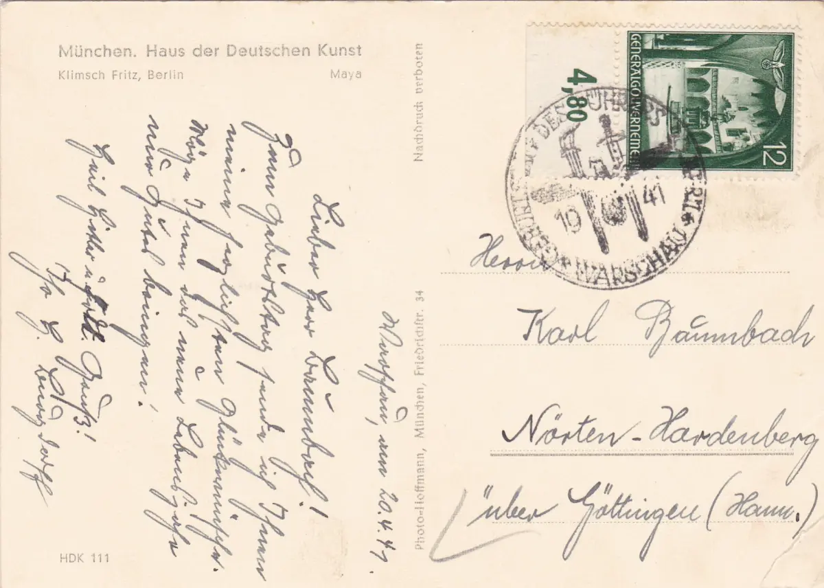 GG: Ak Maison de l'art, timbre spécial 1941, anniversaire, Photo Hoffmann