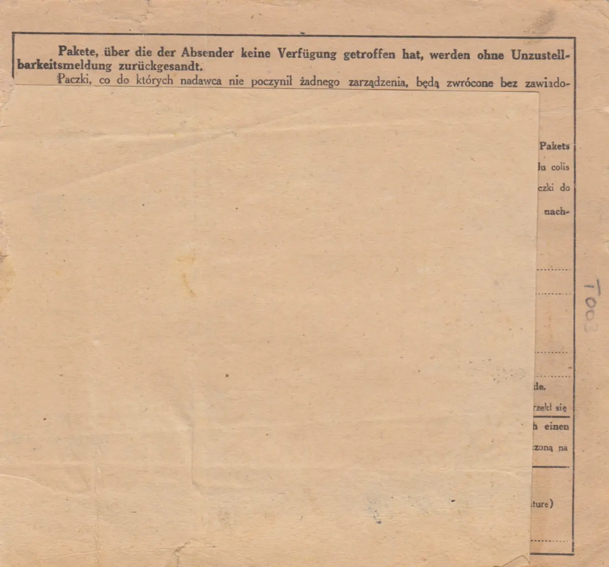 Carte de paquet international GG Bochnia vers Salzwedel, contenu Wehrmachtsgrund