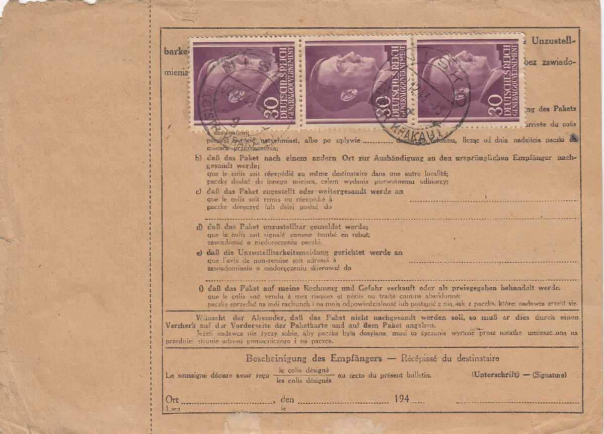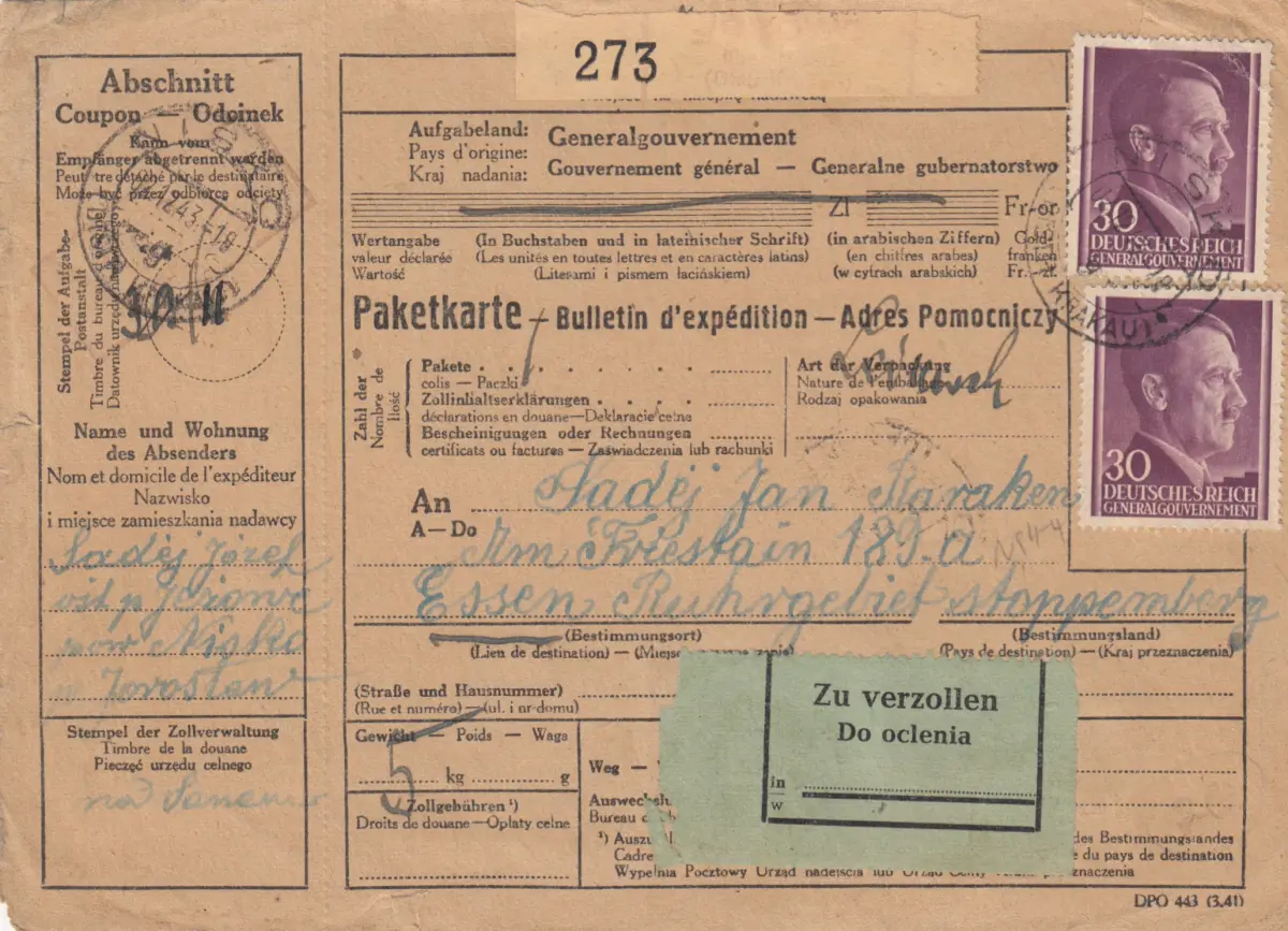 GG: Carte de colis international Jarovslaw vers Essen, MeF #79