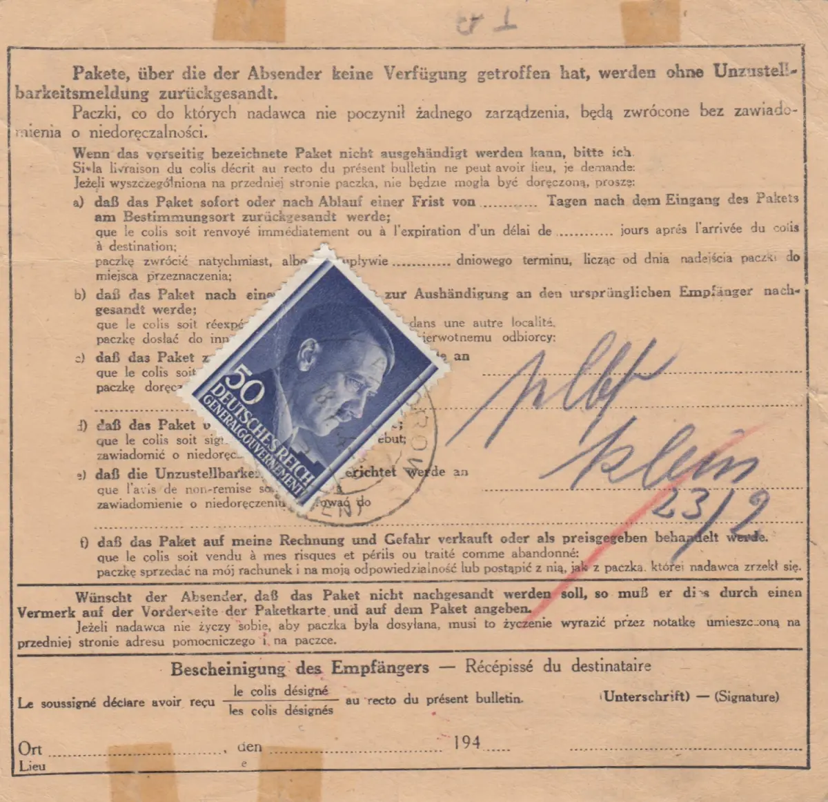Gouvernement général Voir Scan, Marques seulement coupées dans le scan General Government Numéro d'article: 941101 Vérification: original Référence produit: 000000009411.01