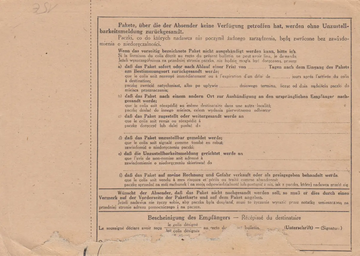 Carte de paquets internationaux GG Cracovie-Graz, MeF