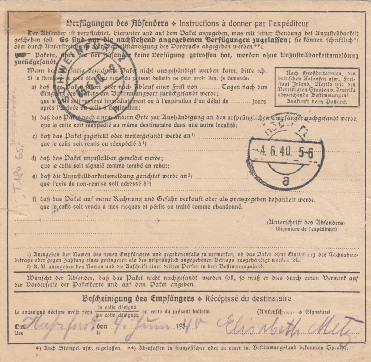 Carte de colis international GG Cracovie après Schweinfurt, valeur, frais de douane