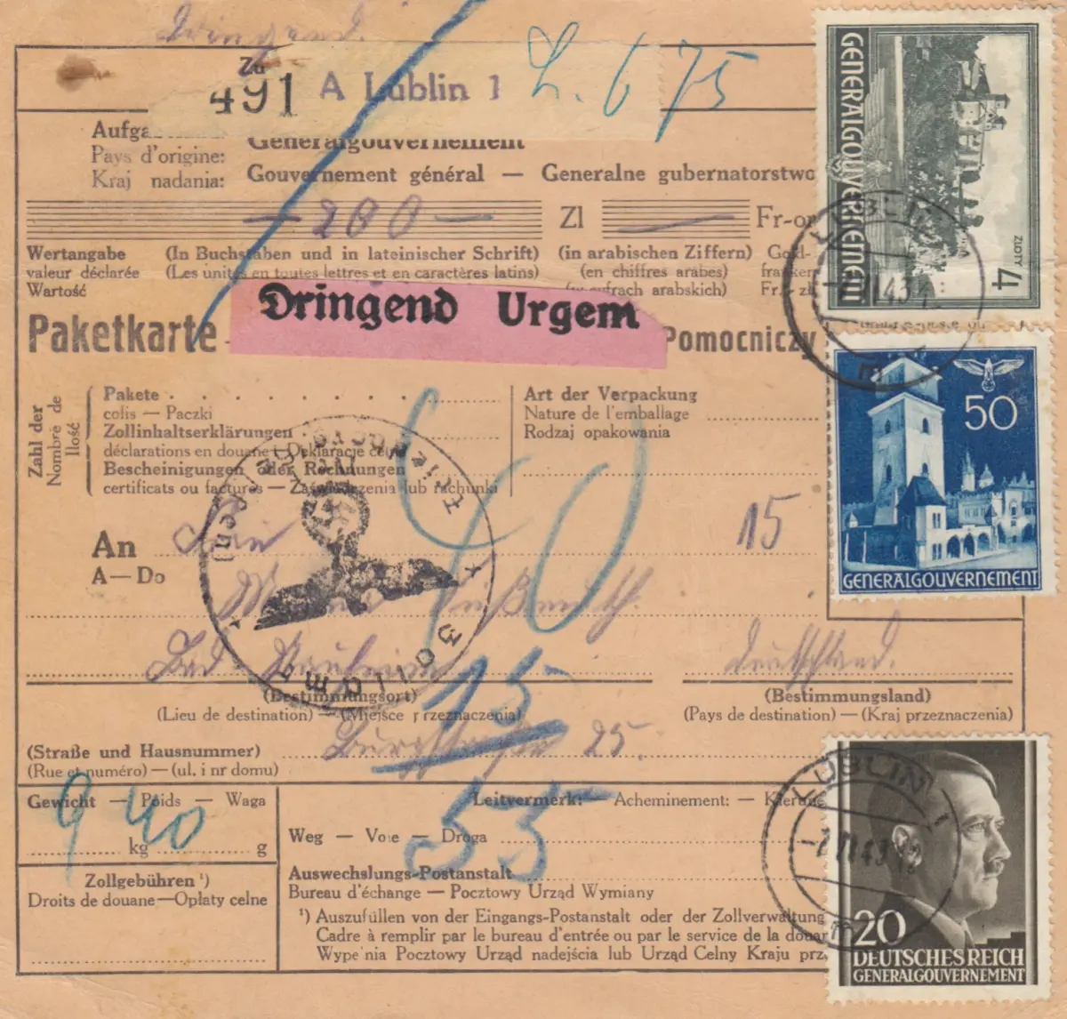 Carte de colis international GG Lublin, urgent
