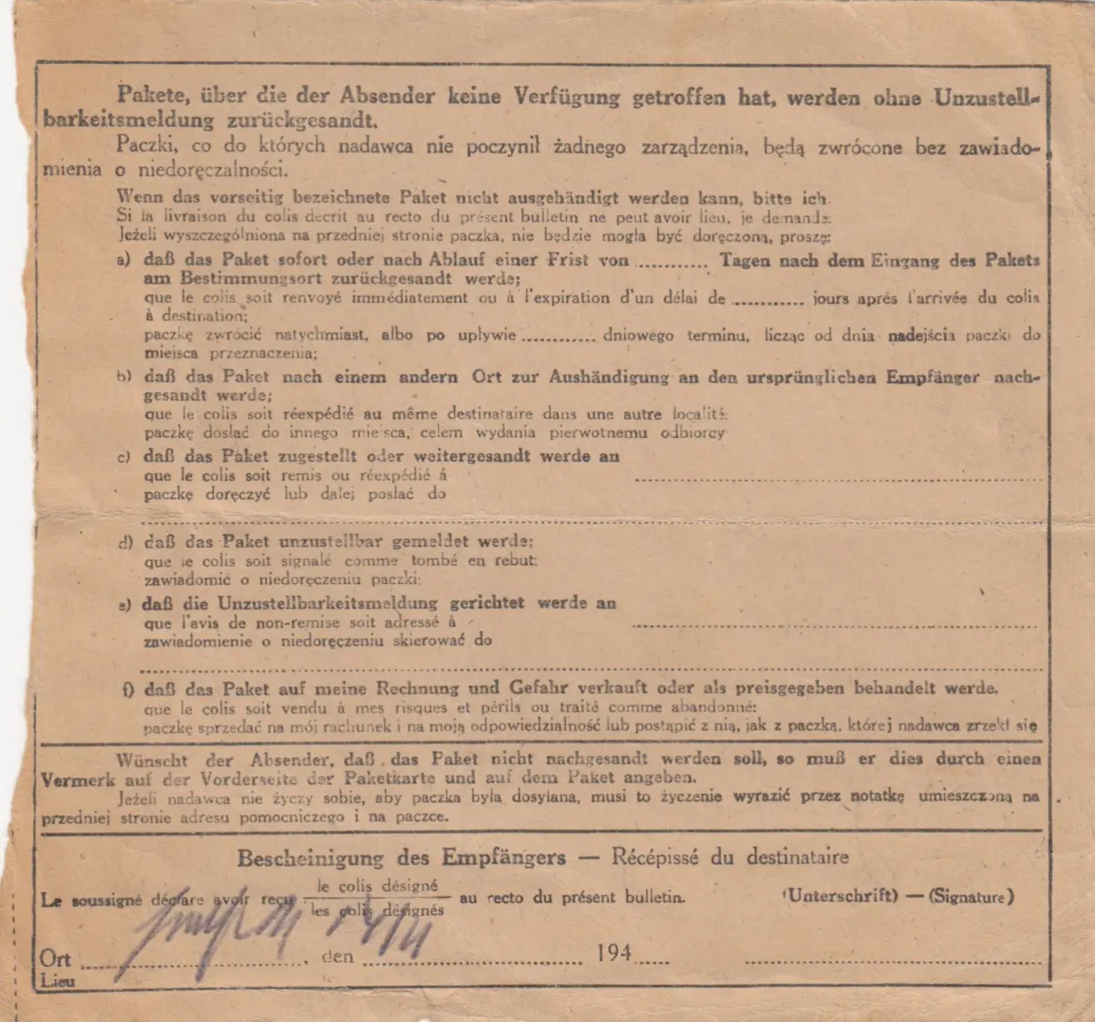 GG: Carte de colis international Mi Nr. 87B EF !!!, Kielce-Treffflehouse, Bug