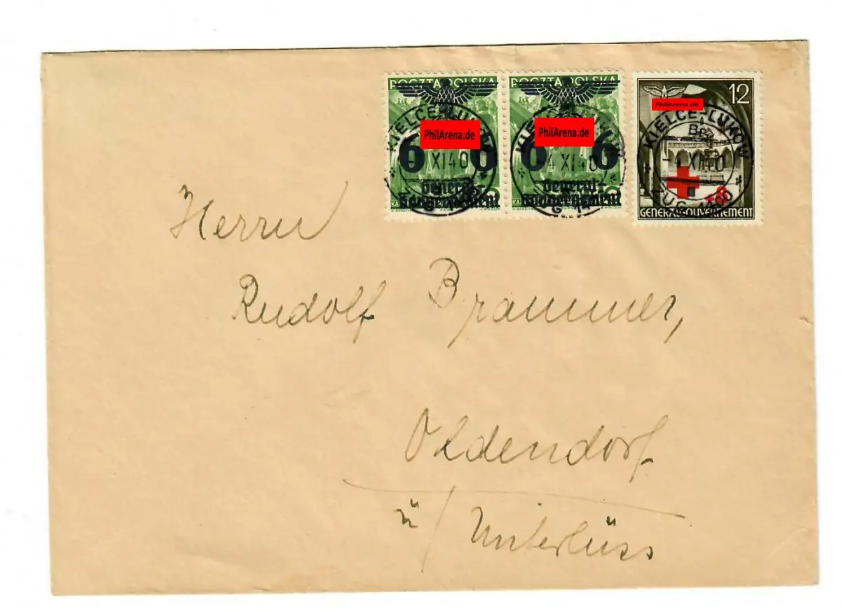 GG Tampon de la poste: Kielce - Lukow: Train n° 1400 vers Oldendorf