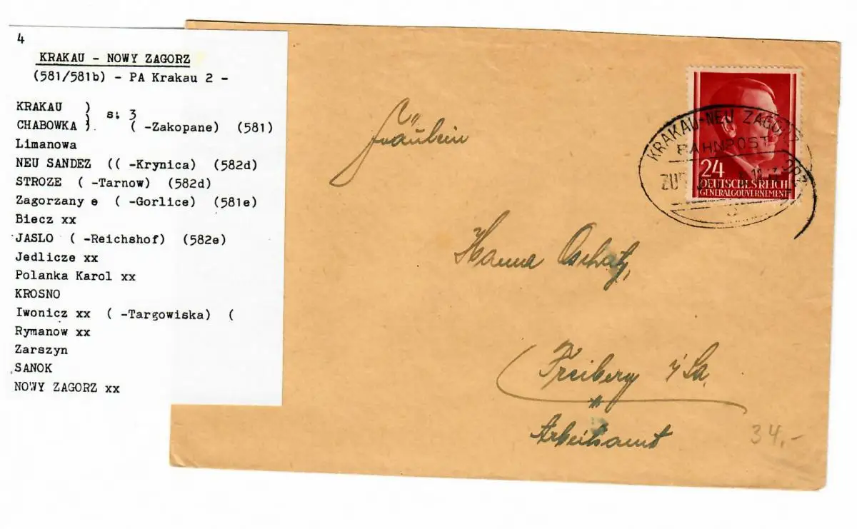 GG Tampon de la poste ferroviaire: Cracovie - Neu Zagorz/Bahnpost vers Freiberg