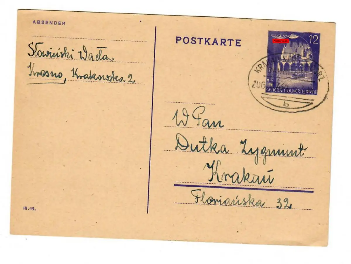 Tampon de poste GG: Cracovie - Nouveau Zagorz sur l'affaire entière de Krosno 1944