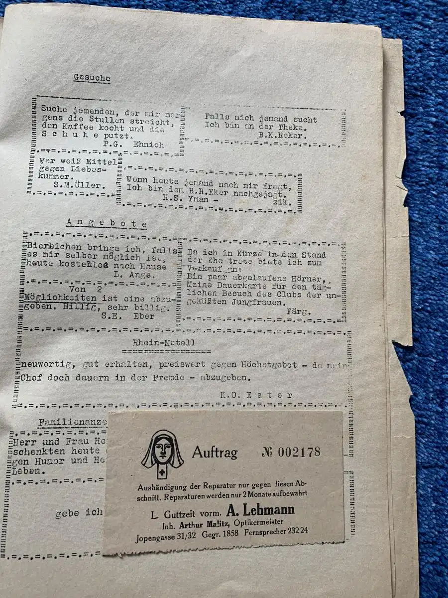 GG: Bier Zeitung 12.12.1940: Drôle journal en écriture machine
