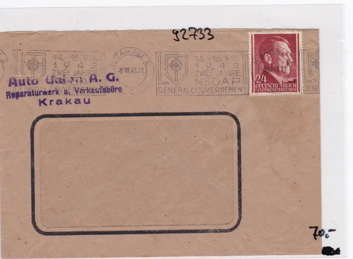 GG: Lettre de Cracovie avec cachet publicitaire, Timbre de bande Auto Union, Rare