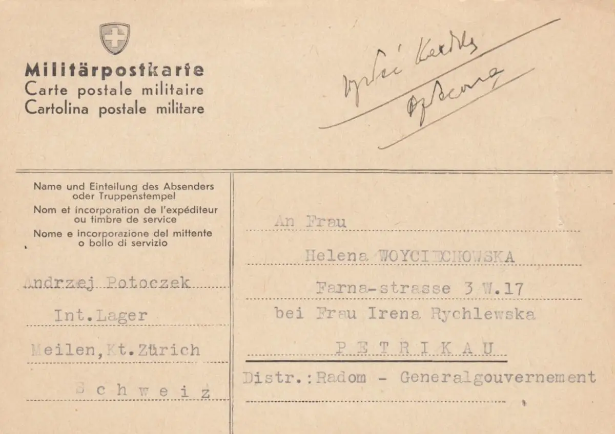 GG: CH: Carte postale militaire Camps internés miles après Pétrikaum-s tarde Post 11.44