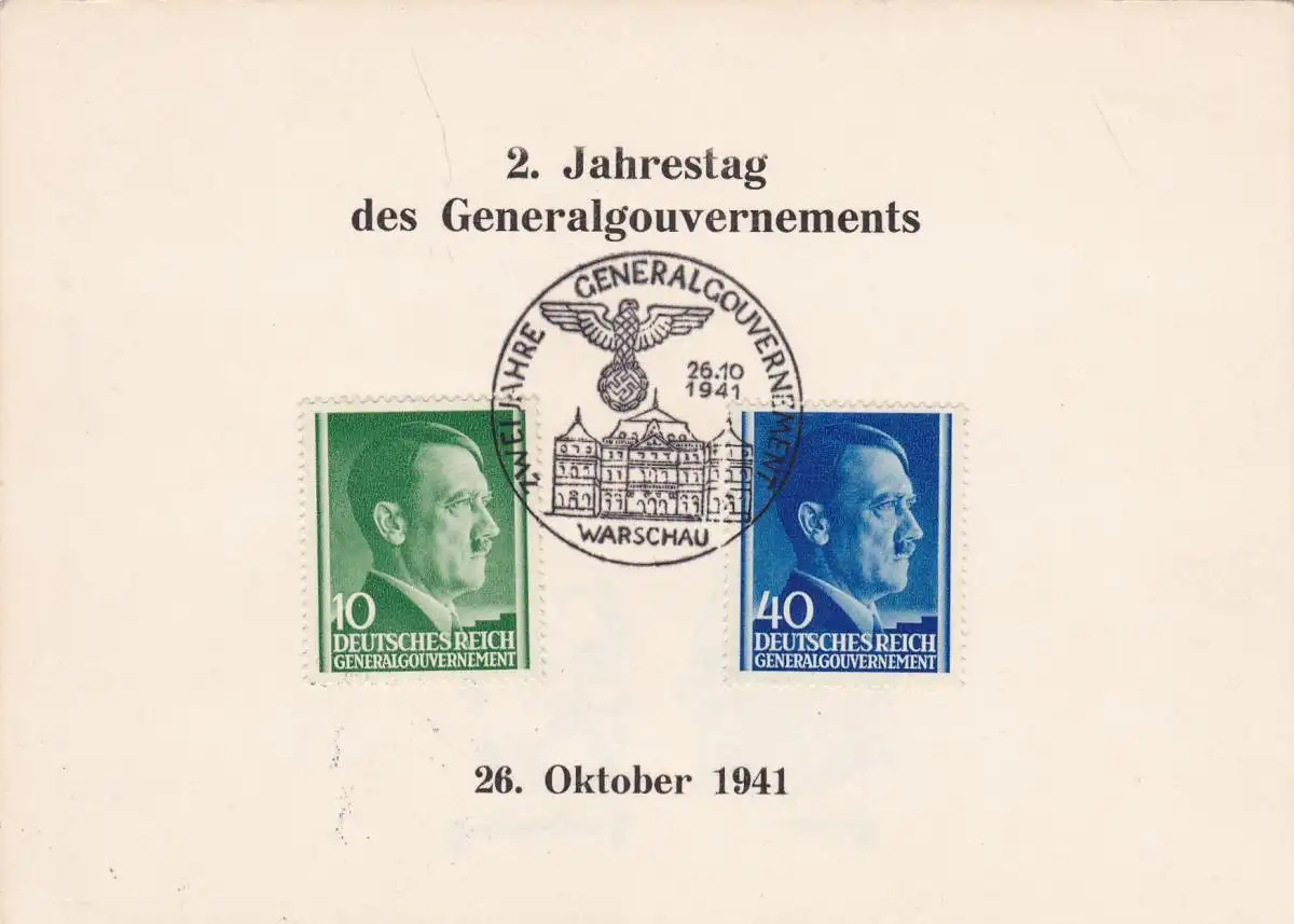 GG: Carte commémorative, Varsovie avec cachet spécial et impression privée arrière
