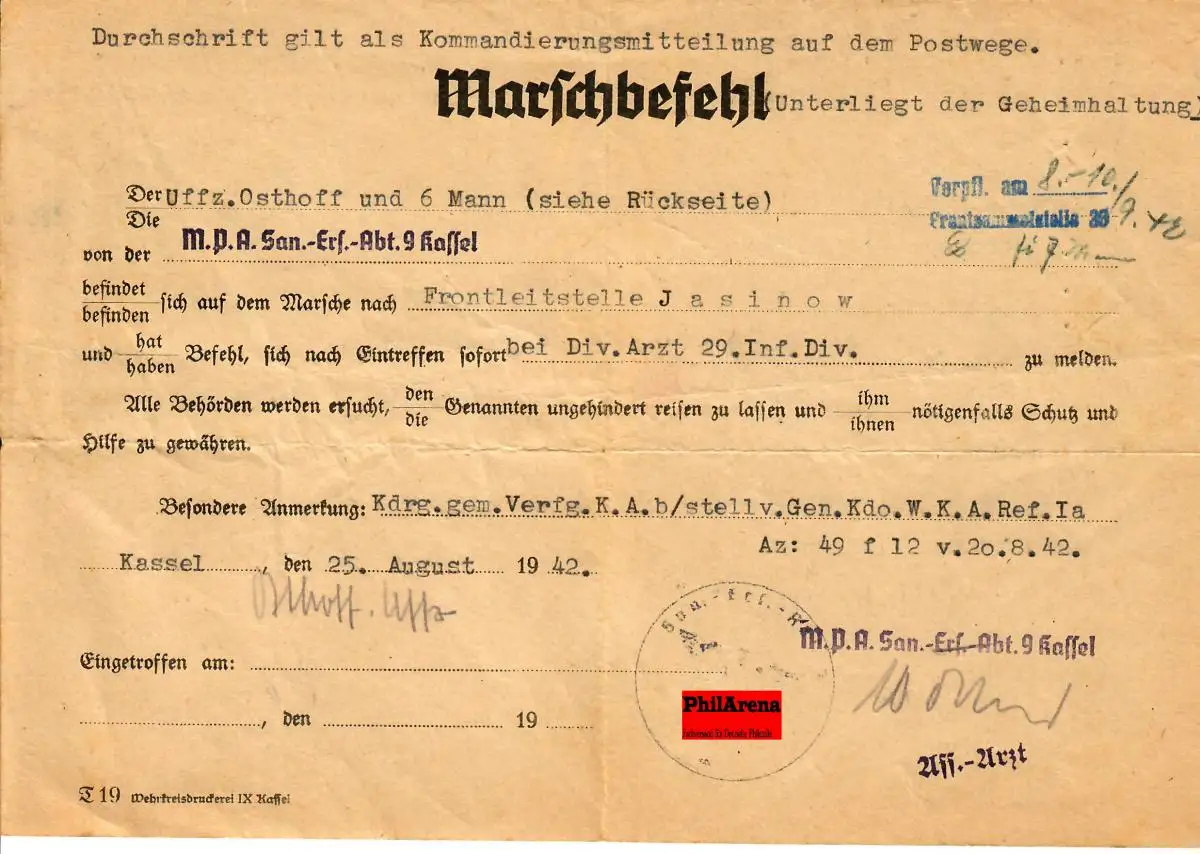 GG: Commande de marche Kassel à la direction de front Jazinov. 6 hommes avec Uffts.