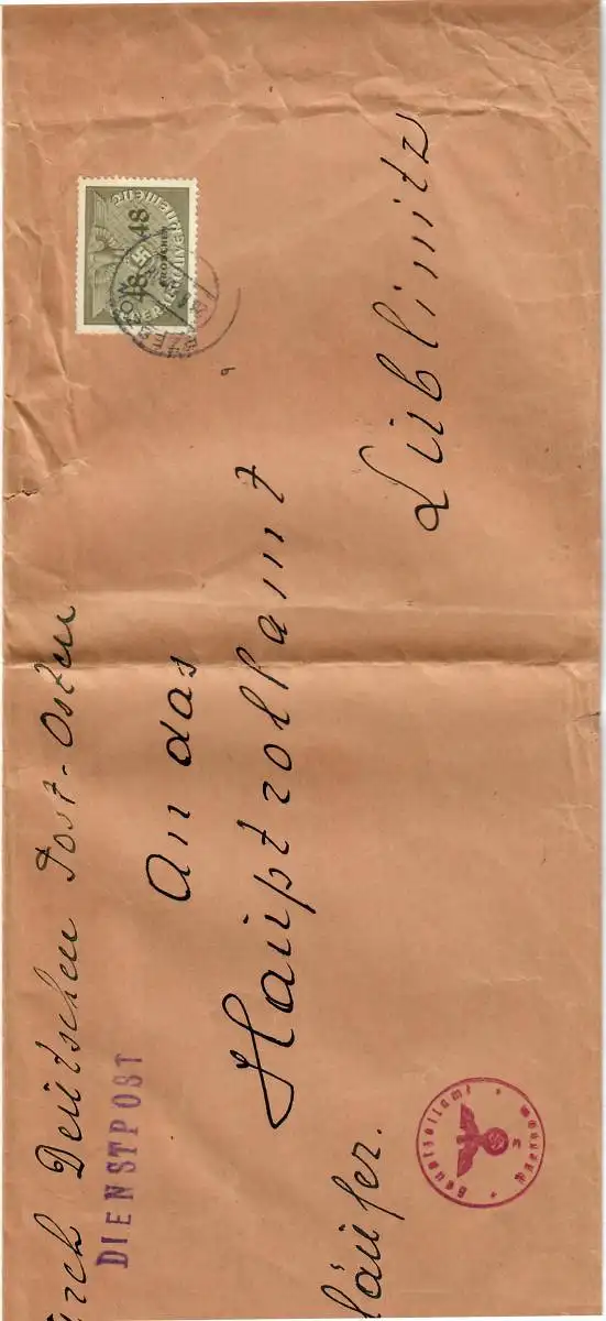 GG Dienst EF 48Gr, Grand-Lettre Rtsezow Haut-zollamt vers Lublinitz, portofach