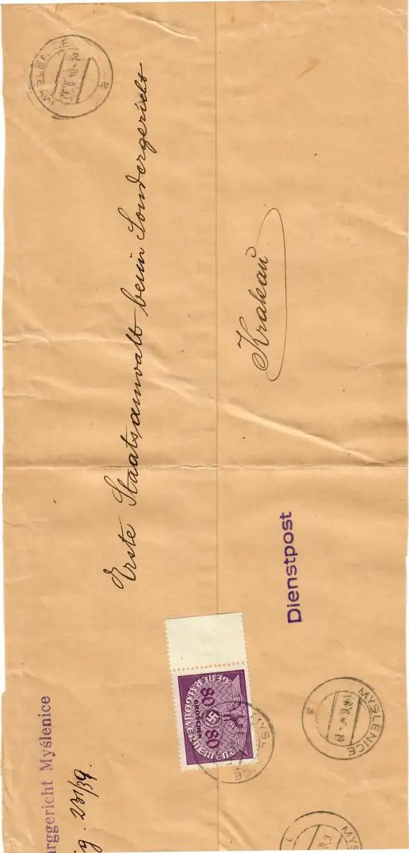 GG Service EF 80Gr sur le courrier Cour Myslenice, 3ème étage