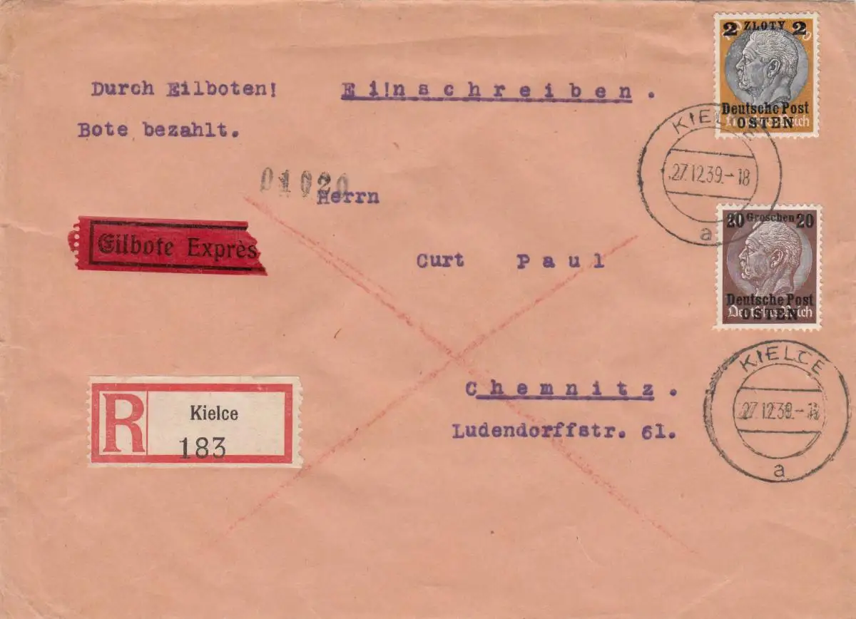 GG: Lettre Eil-R, porto approprié: 80+60+50 +30 pour 2ème étage selon Chemnitz