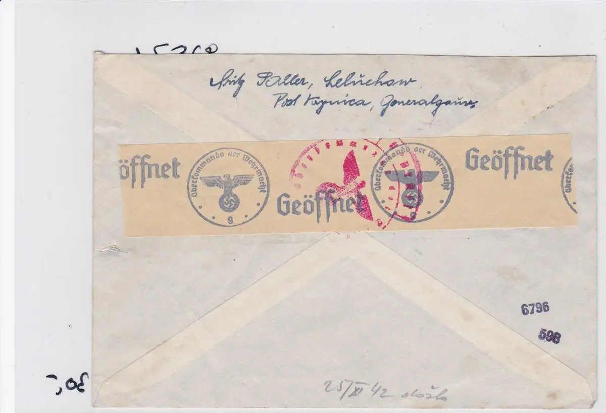 GG: courriers électroniques/lettre recommandée de Krynica à Zvolen/Slovaquie, censure