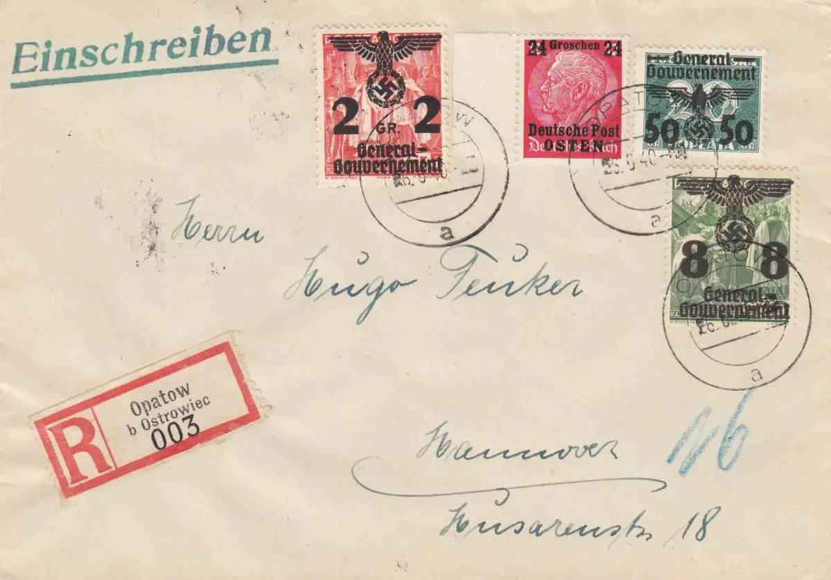 GG: Einschreiben Opatow nach Hannover, portogerecht