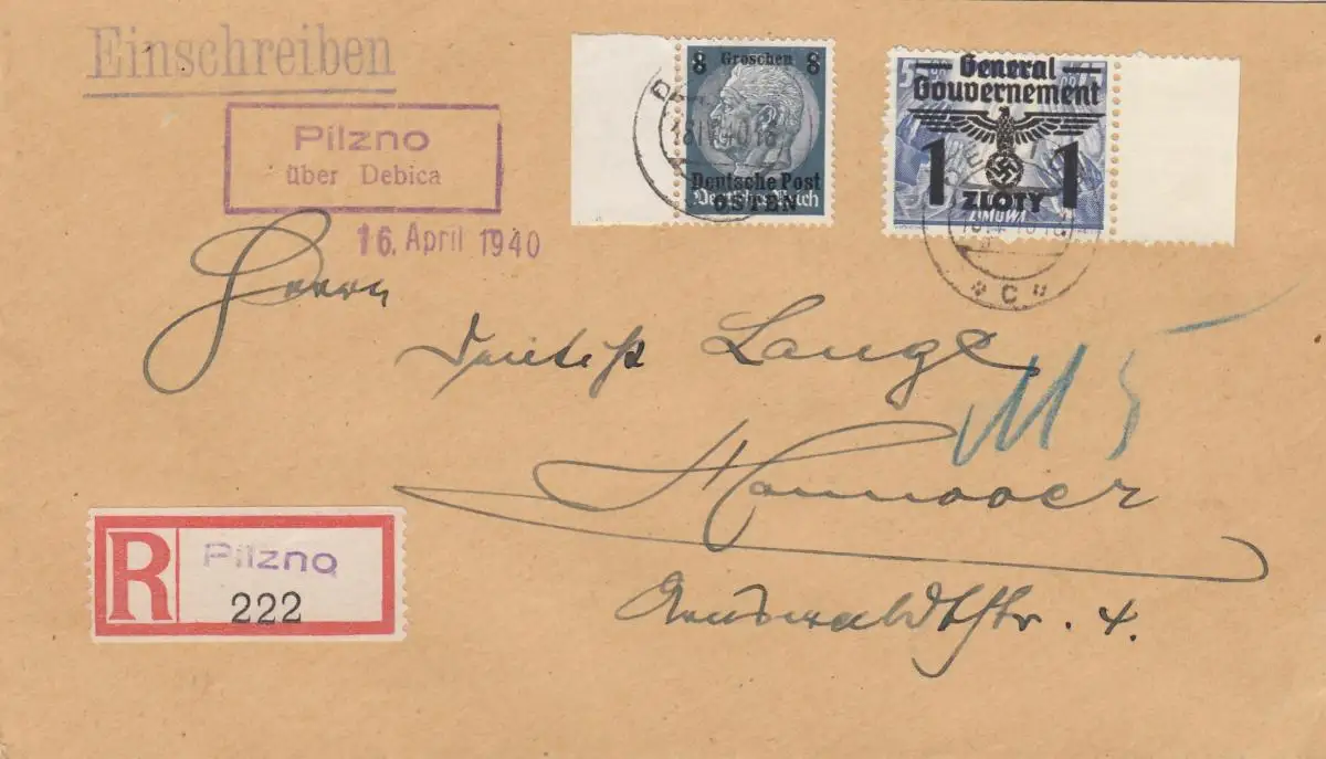 GG: Inscription Pilnzo/Debica vers Hanovre, portofach