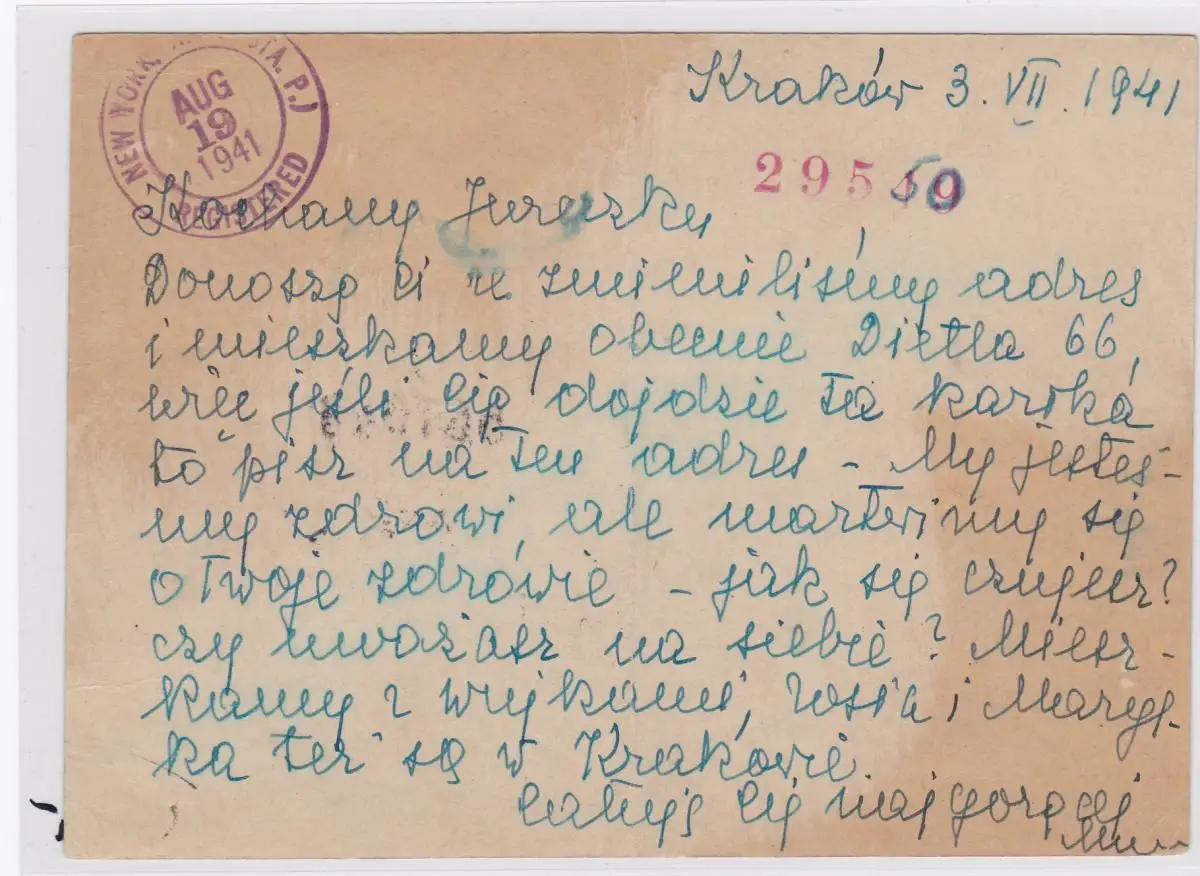 GG: Carte postale recommandée de Cracovie aux États-Unis
