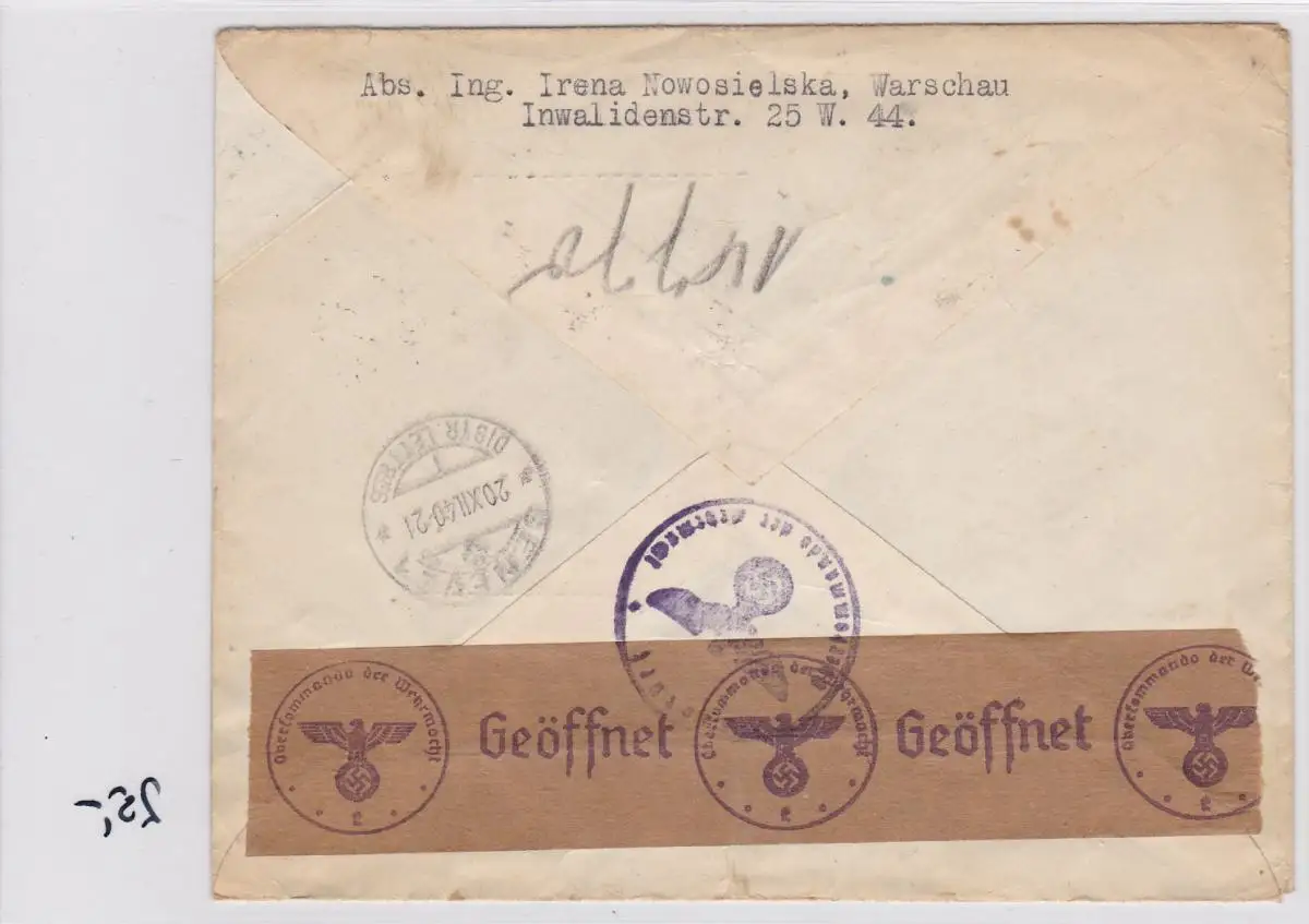 GG: Lettre recommandée Varsovie à la prisonnière de la Croix-Rouge