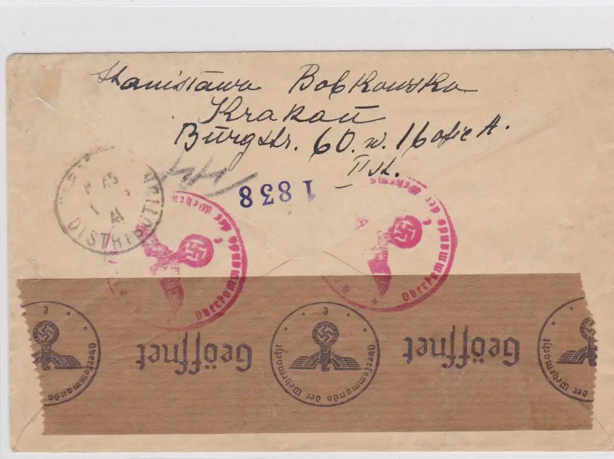 GG: Lettre recommandé de Cracovie à Paris, censure