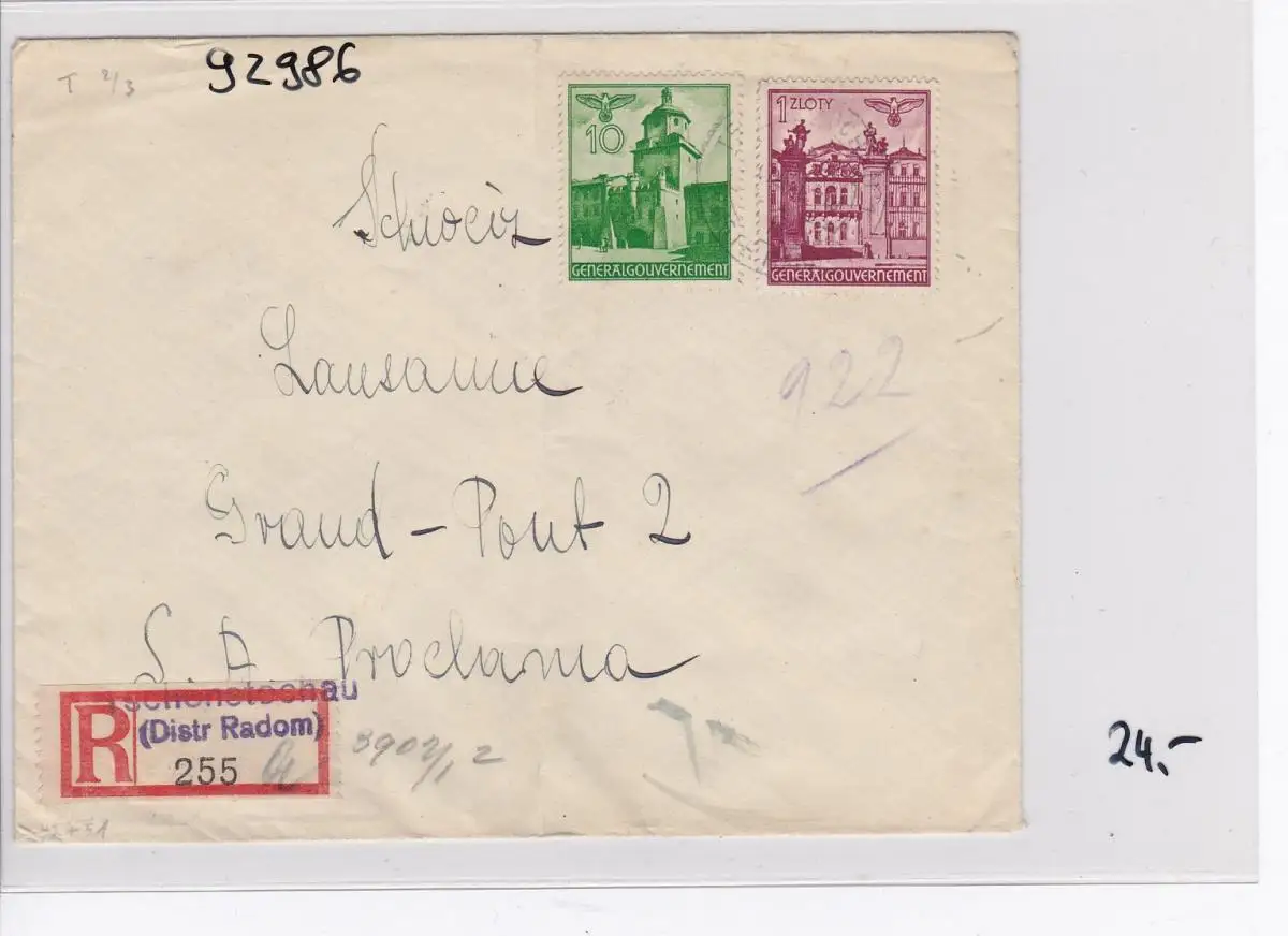 GG: Lettre recommandée de Chestochau à Lausanne/Zensur
