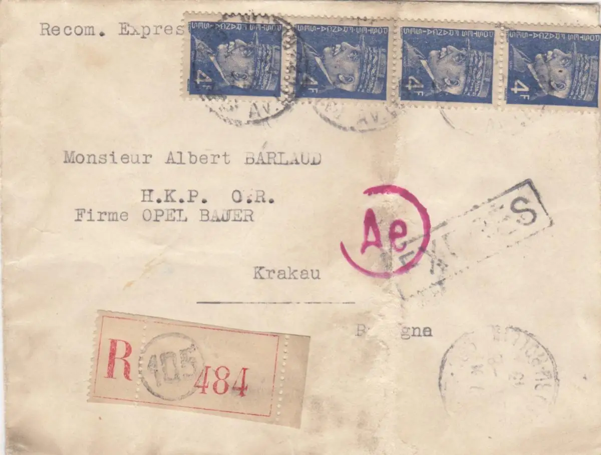 GG France: Lettre recommandé à OPEL Bauer à Cracovie, censure