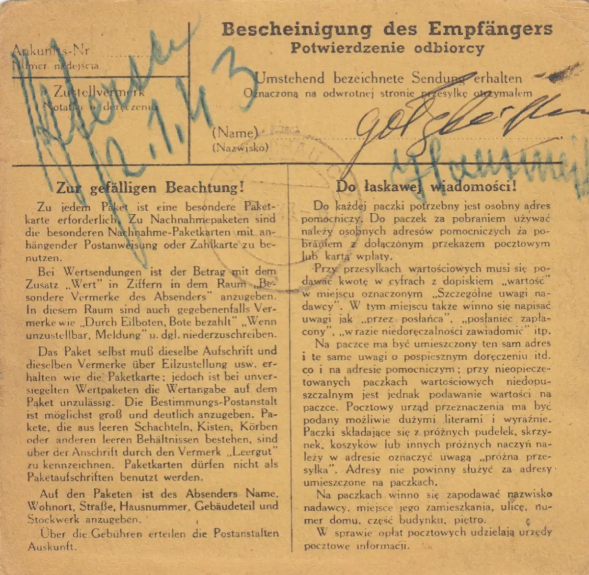 Carte de colis intérieur GG Busko Zdroj vers Varsovie