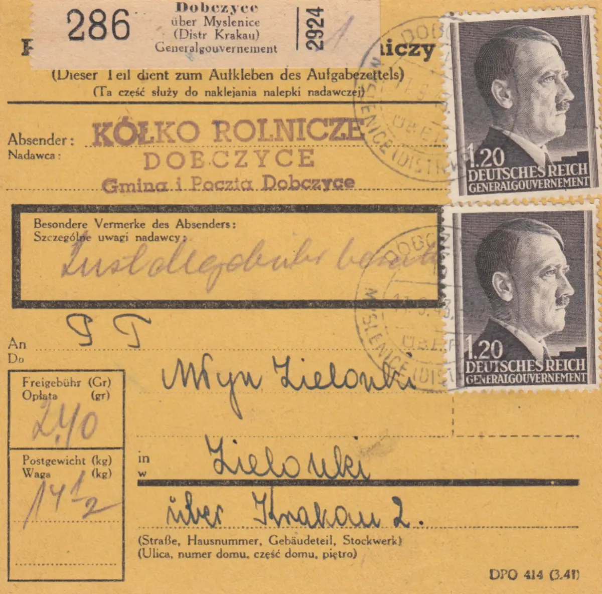GG: Carte de colis intérieur Dobczyce par Zielonki, MeF Min° 87A