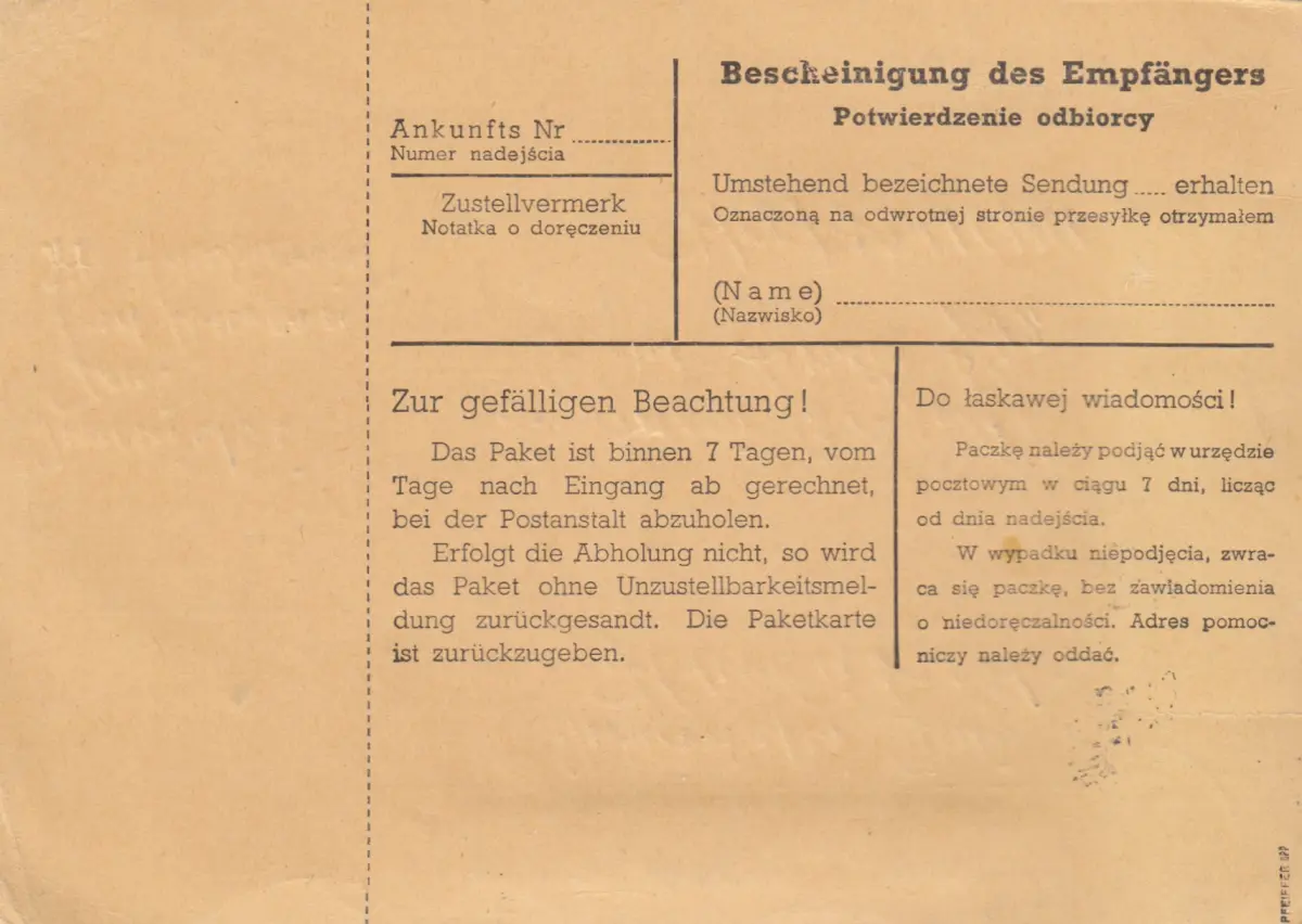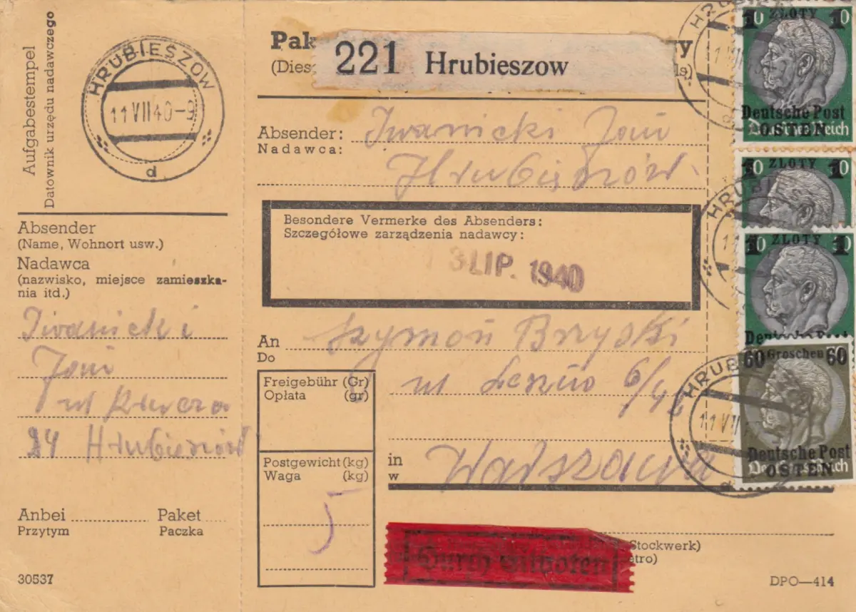 Carte de paquet intérieur GG Hrubieszow comme messager express à Varsovie, BPP Signature