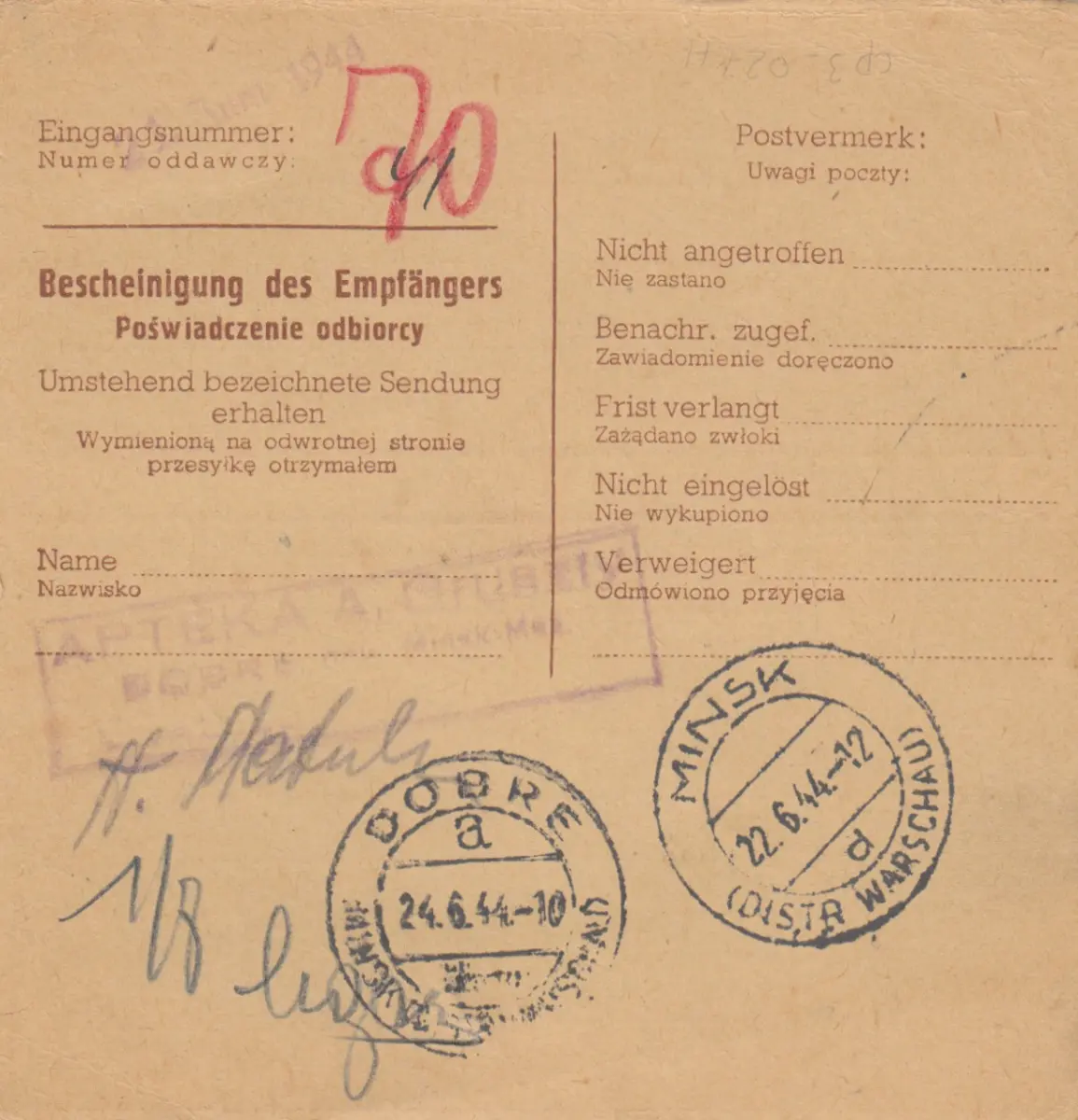 Carte nationale GG NN, Varsovie Frais payés selon Dobre