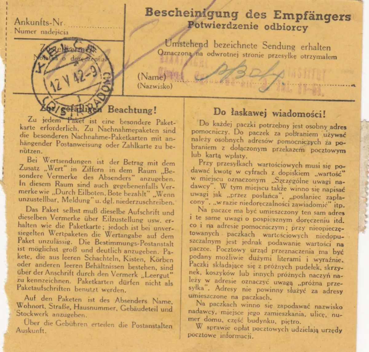 GG: carte de paquet intérieur Scarkarysko-Kamienna-kielce, numéro 87A EF