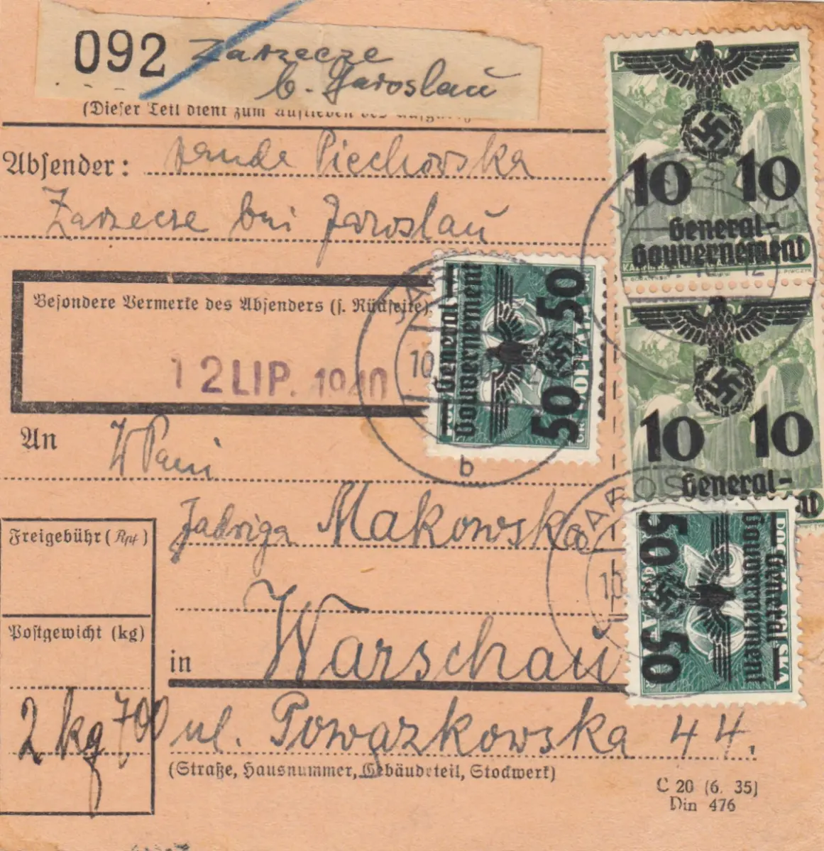 Carte de paquets intérieurs GG Zarzecze-Varsovie, MiF rare (#35)