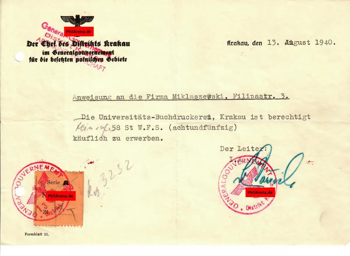 GG: Instruction à l'imprimerie Uni-Buchschrift pour l 'achat de savon, Cracovie 1940