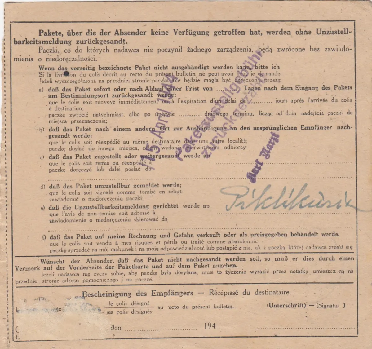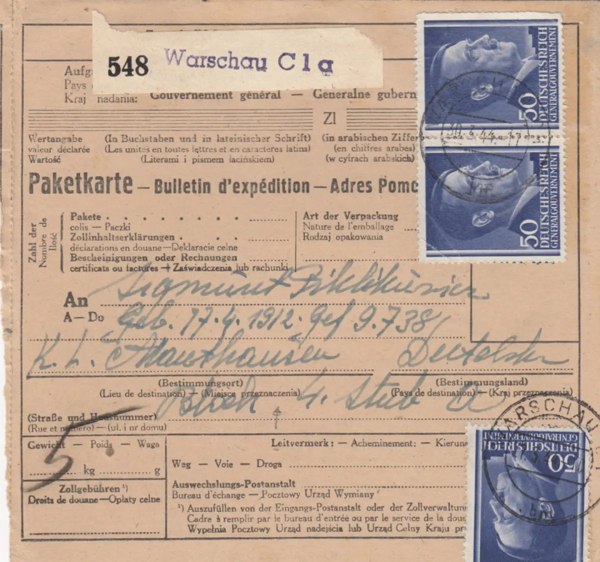 GG: Judaika: Carte de colis Varsovie à KZ Mauthausen, bloc 4