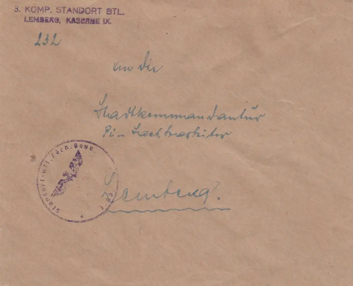 GG: Poste de courrier: 3. Poste Comparative Btl. Lemberg à Kortommandantur