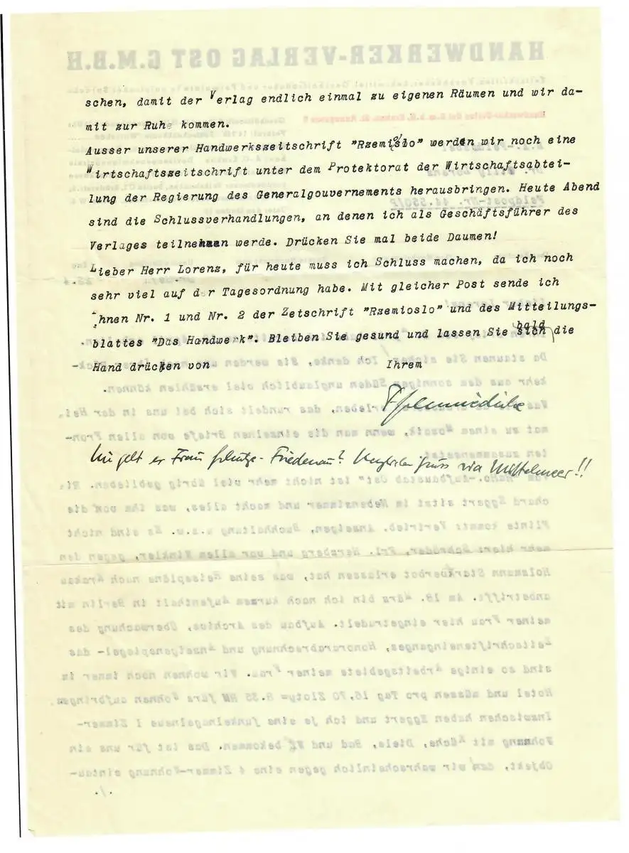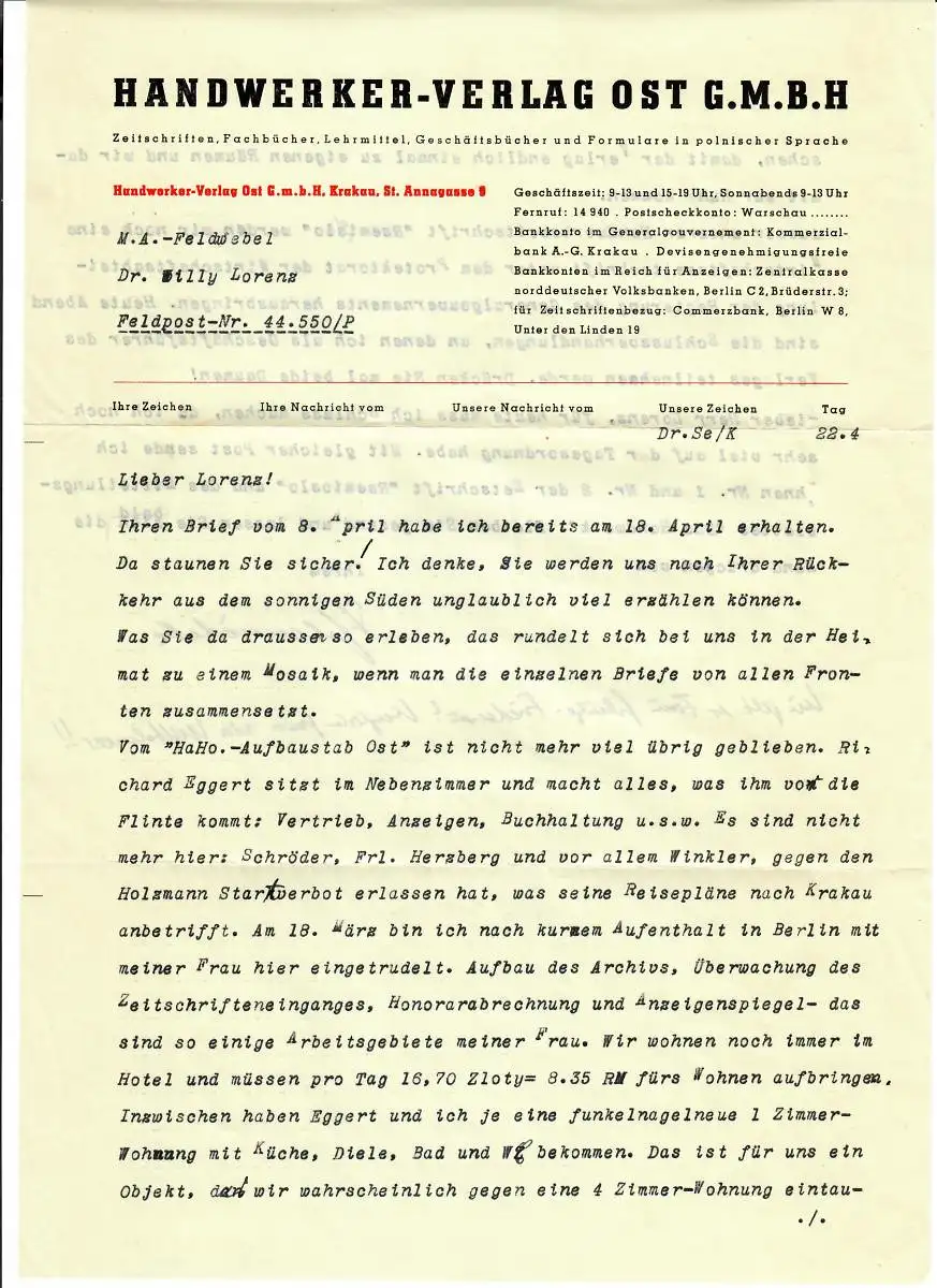 GG: Lettre édition artisans, Contenu: Structure et archives Horaires, Cracovie 1942