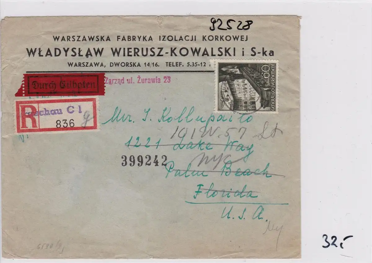 GG: Lettre recommandé /Eilboten Varsovie versFloride/USA