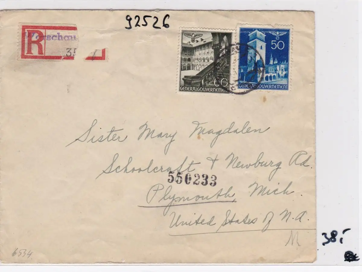 GG: Lettre recommandé Varsovie vers Plymouth/USA
