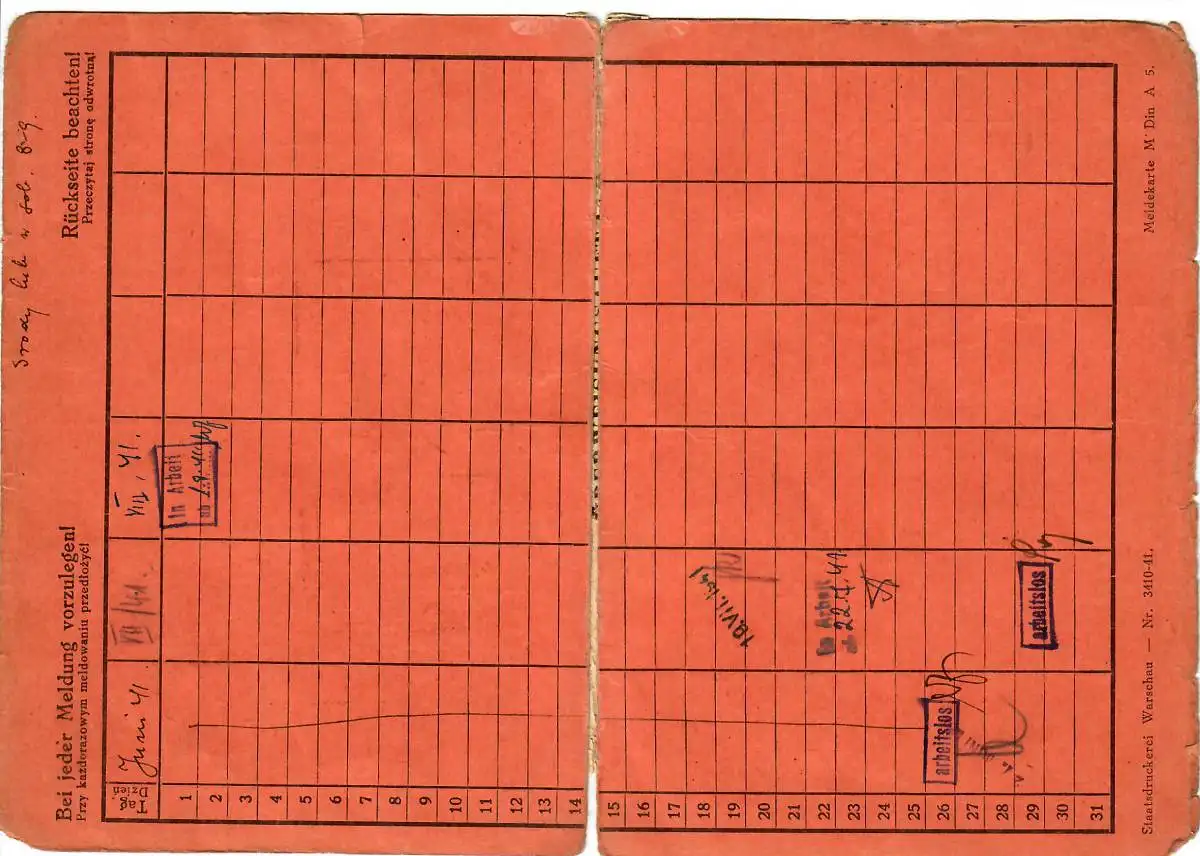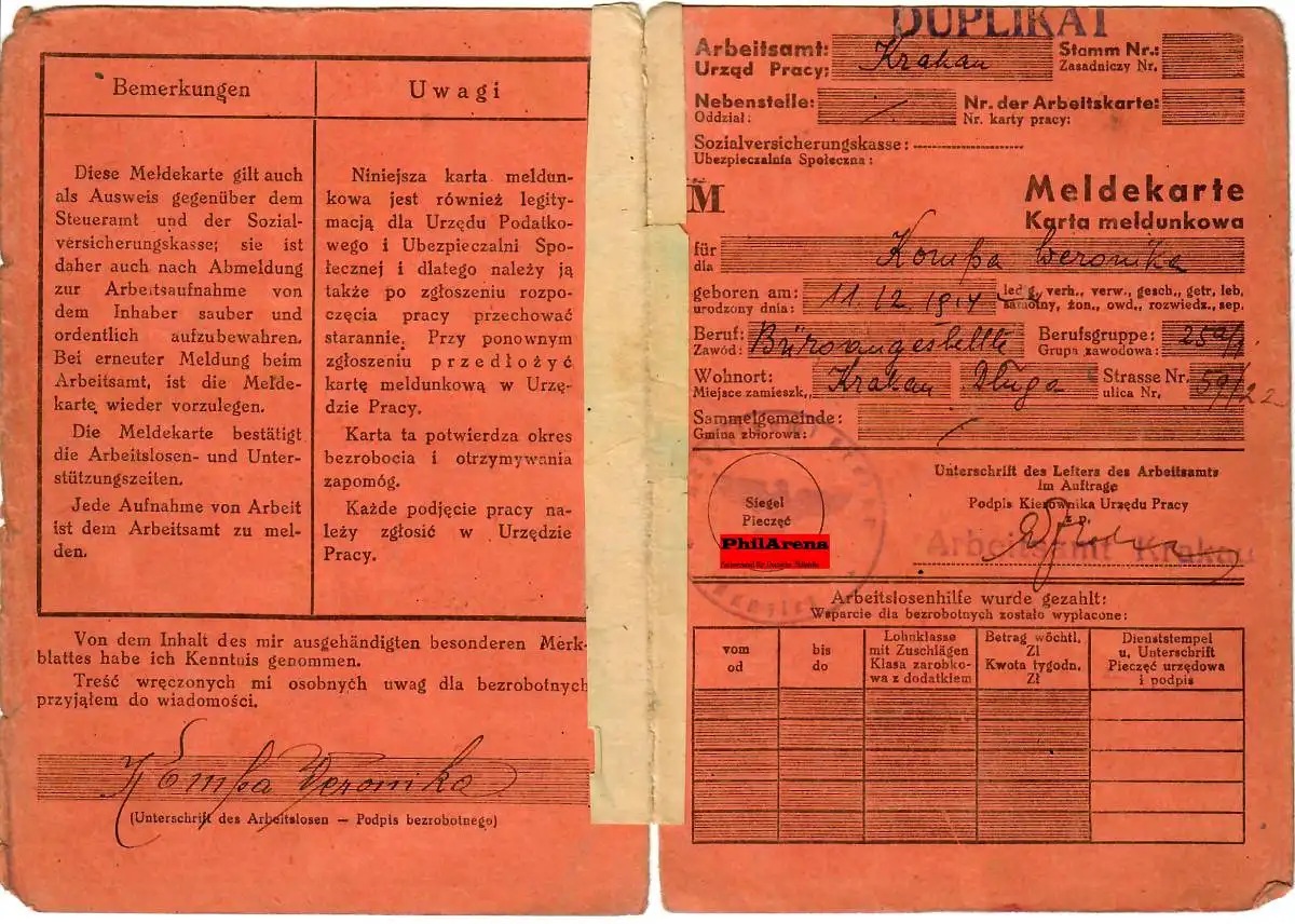 GG: Carte de rapport du bureau de l'emploi Cracovie, employé de bureau en 1941,