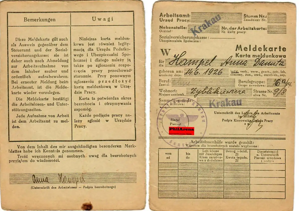GG: Carte de rapport - Bureau de l'emploi de Cracovie, Pas de profession, Zyblikiewierca 1942